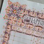 The artwork has been faithfully reproduced from the original, which is now in the public domain, separating out the colour layers and reprinting them in colours that most closely match the original. Any misalignment of the original artwork has not been corrected and smudges have not been removed, including the fingerprint on the edge of the month of March left behind during the printing process. The artwork for July was the only one not available from the original set, so the artwork for January has been used in its place and reinterpreted in a new colour palette reminiscent of a starry summer night sky.