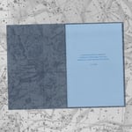 A6, 12 page booklet printed in blue Risograph on blue laid paper. Cover printed in metallic silver Risograph. Bound with thread.
