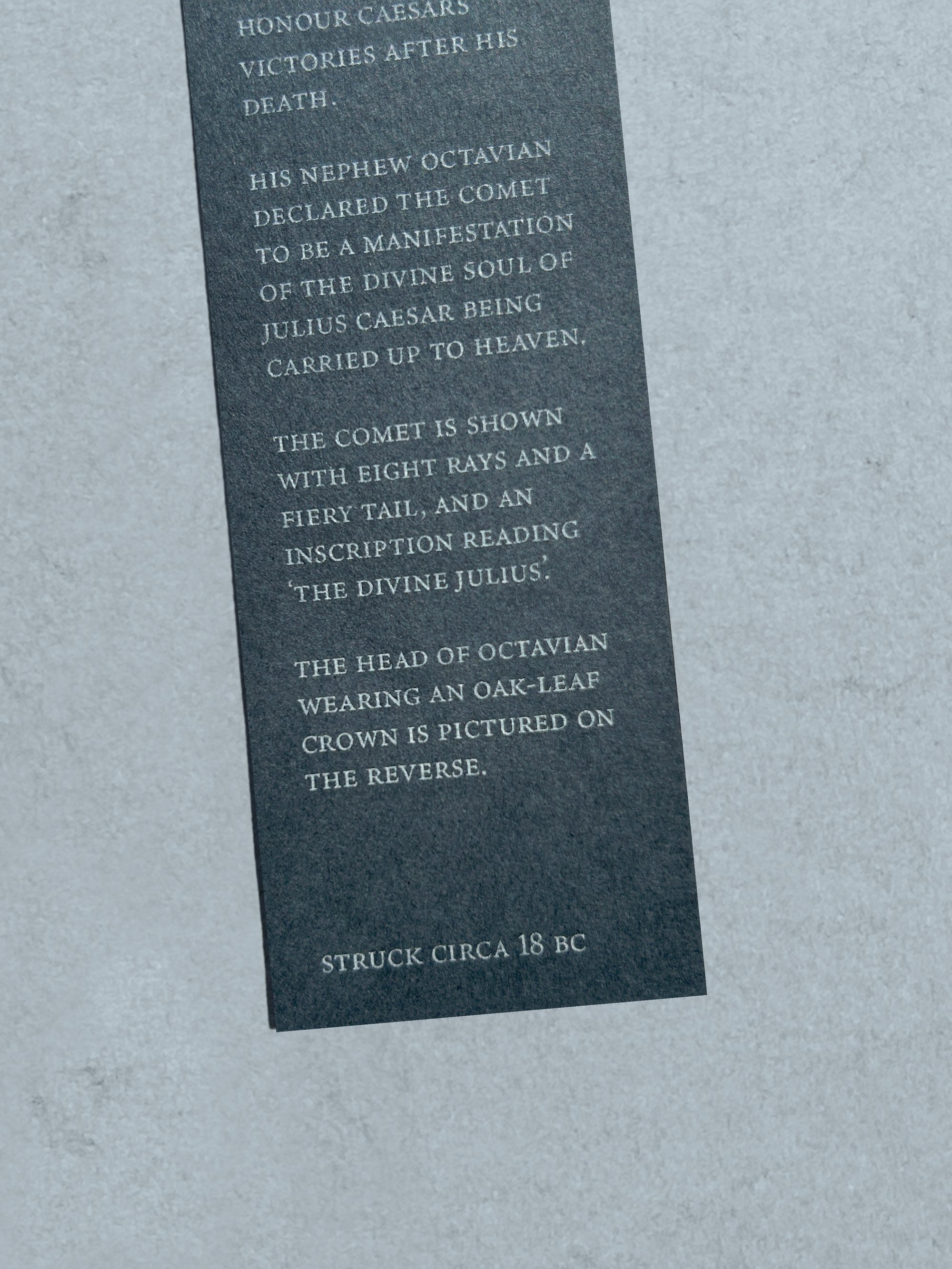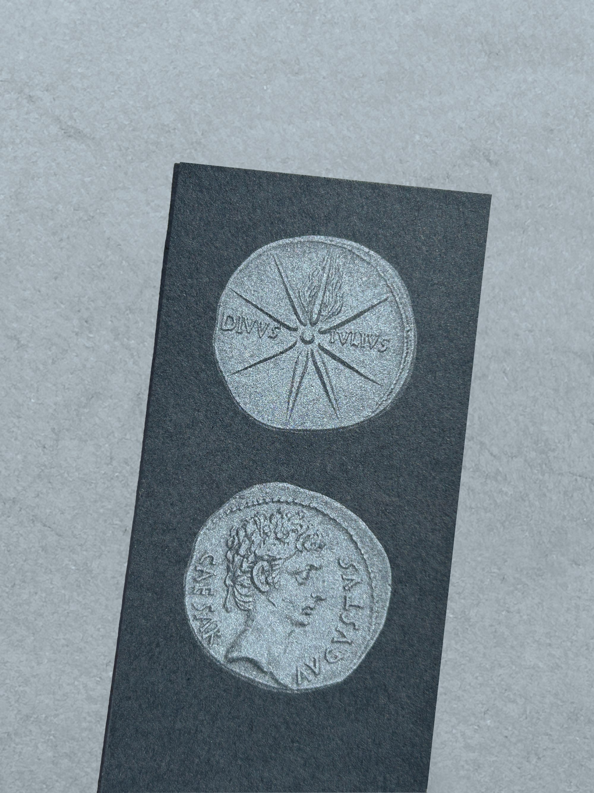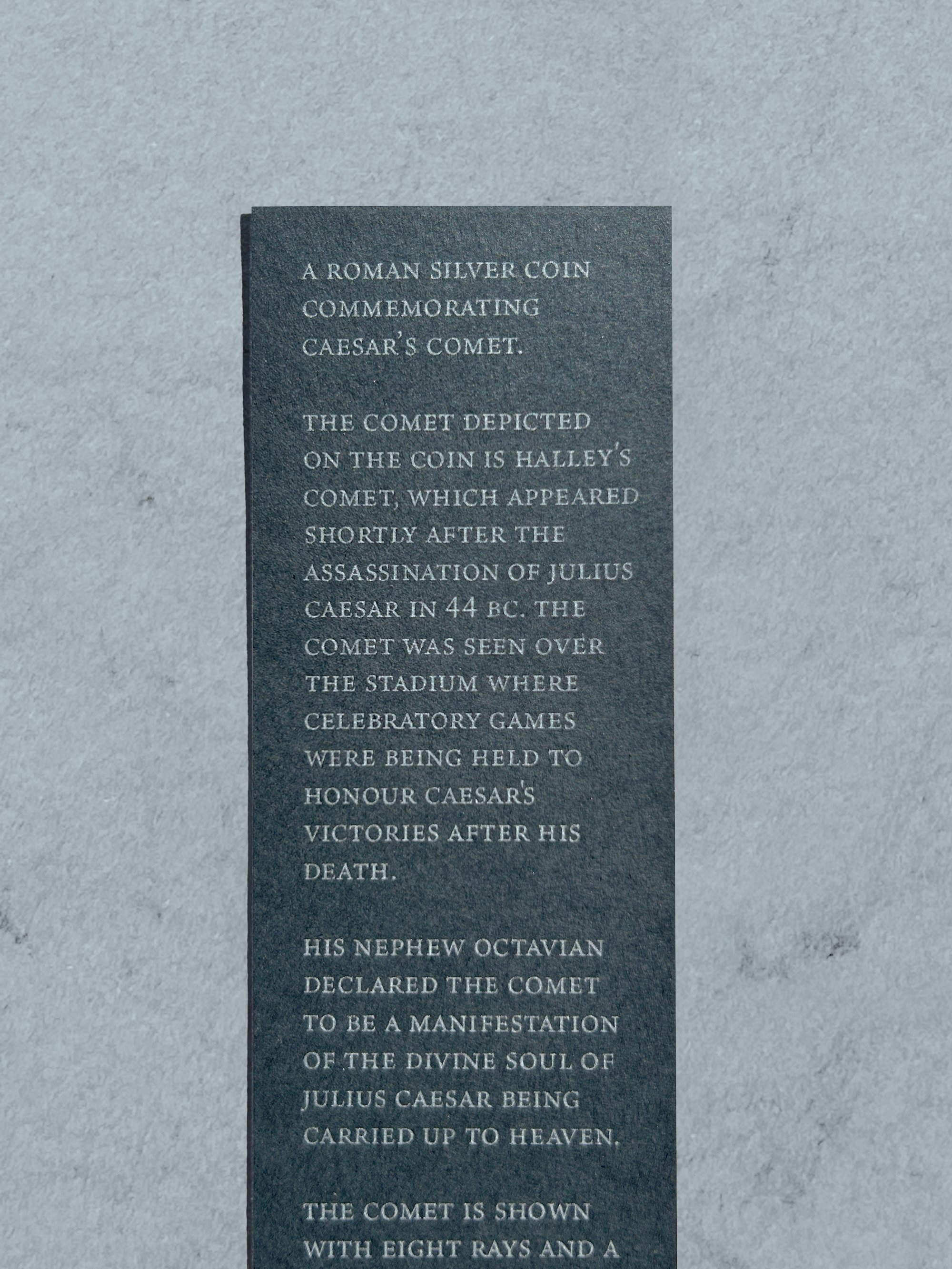 Bookmark featuring a Roman coin that depicts Halley's Comet.