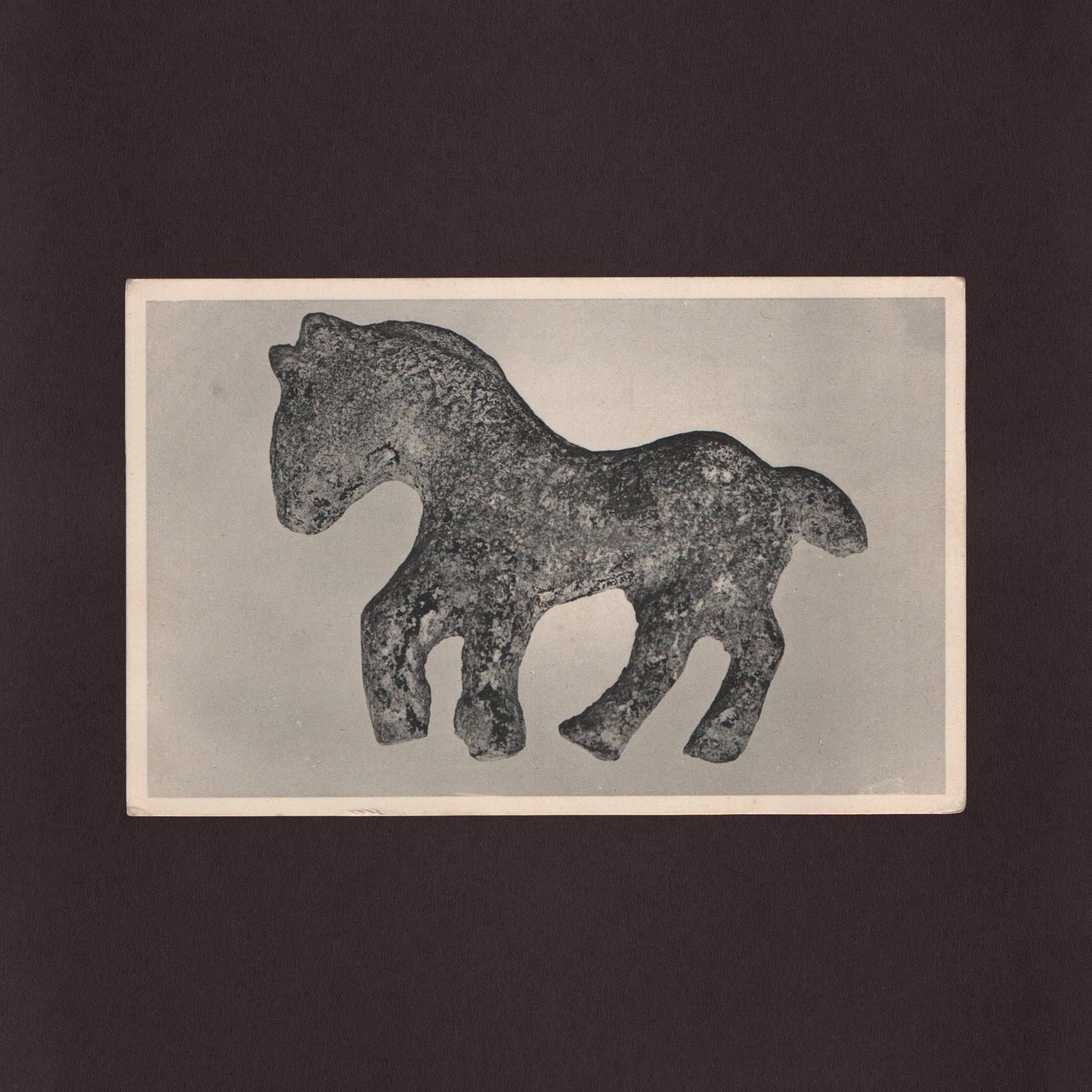 Vintage postcasrd from Chester Museum of a Roman period bronze horse found at Carrawburgh.