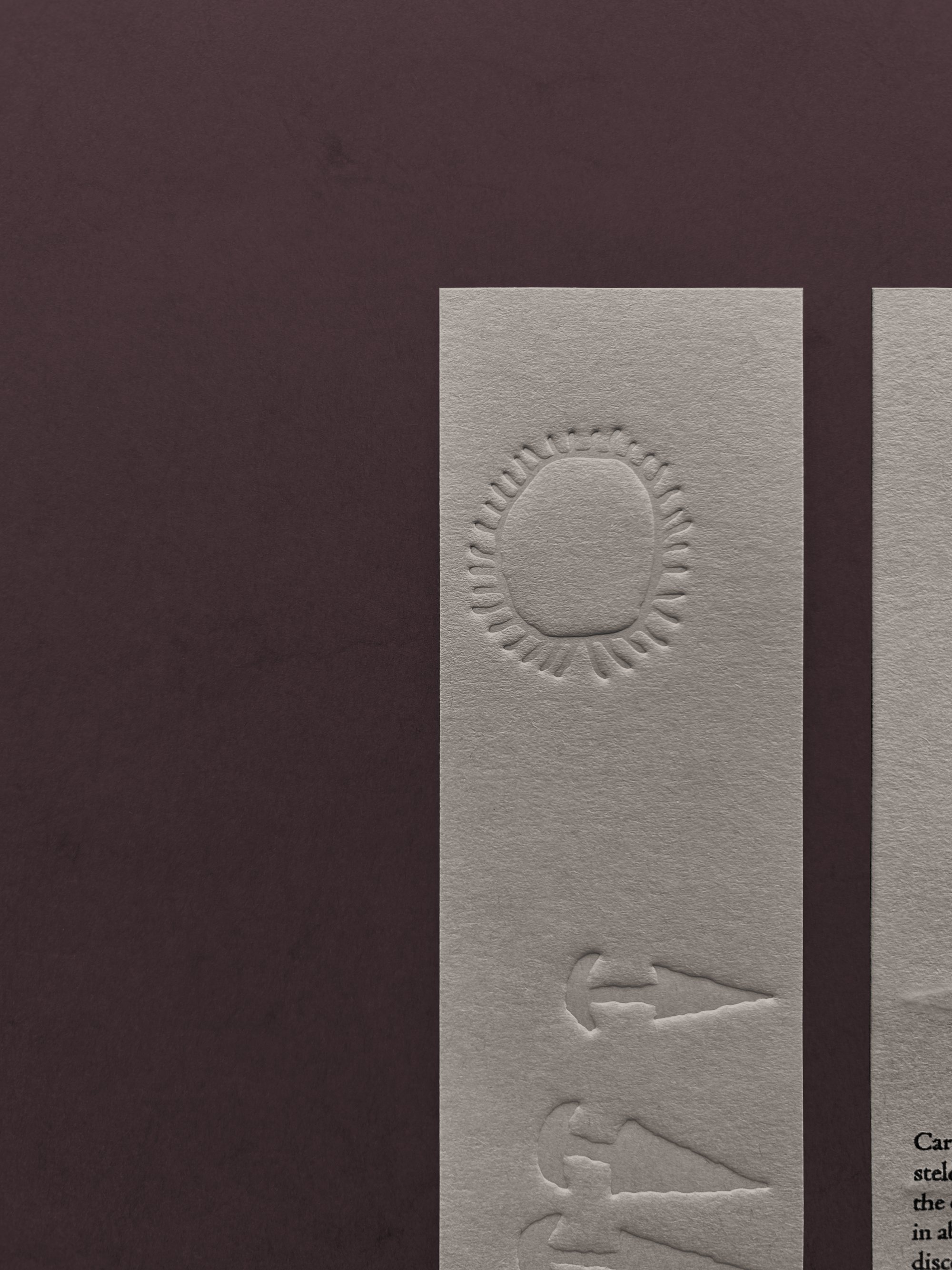 Embossed bookmark based on a carved stone displayed at The World of Stonehenge exhibition in the British Museum (2022).
