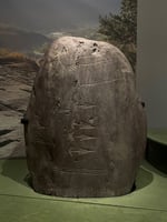 The stone is a fine example of figurative art from the period and bears fourteen carvings in total, with the two most recognisable being a sun and a selection of daggers.