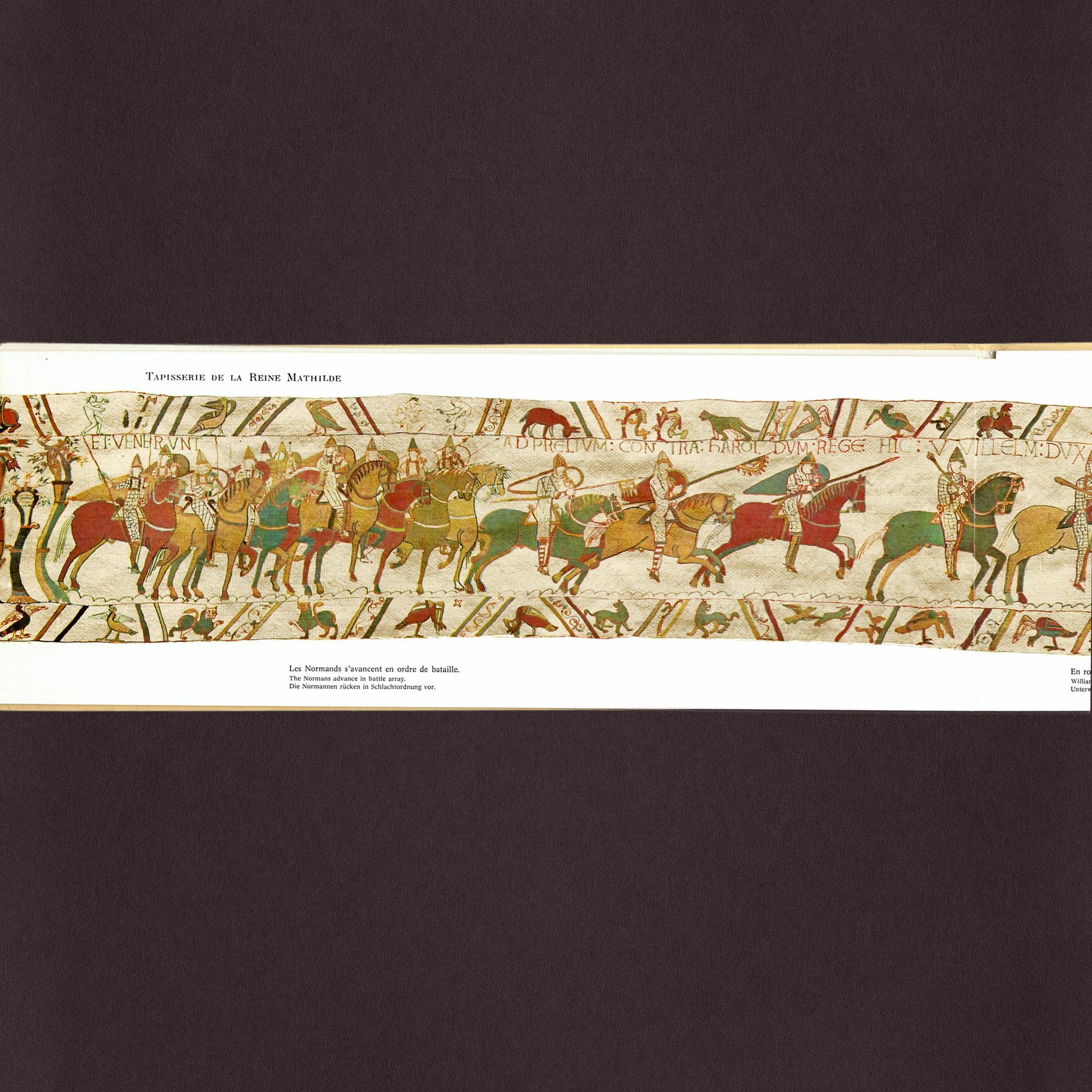 Title translates to 'Such as the Conquest, also known as the Bayeux Tapestry of Queen Matilda'