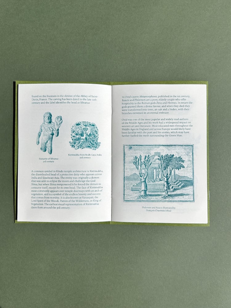 The exact origin of the Green Man is unknown. The very earliest English examples date back to the 11th century. However, versions of his figure have been found across medieval Europe and the Byzantine Empire as far back as the 6th century, and in Ancient Rome, Ancient Greece and into India and Southeast Asia in the 2nd century. The idea of seasonal rebirth and tree-folk can even be traced back to Ovid’s poem Metamorphoses, published in the 1st century.