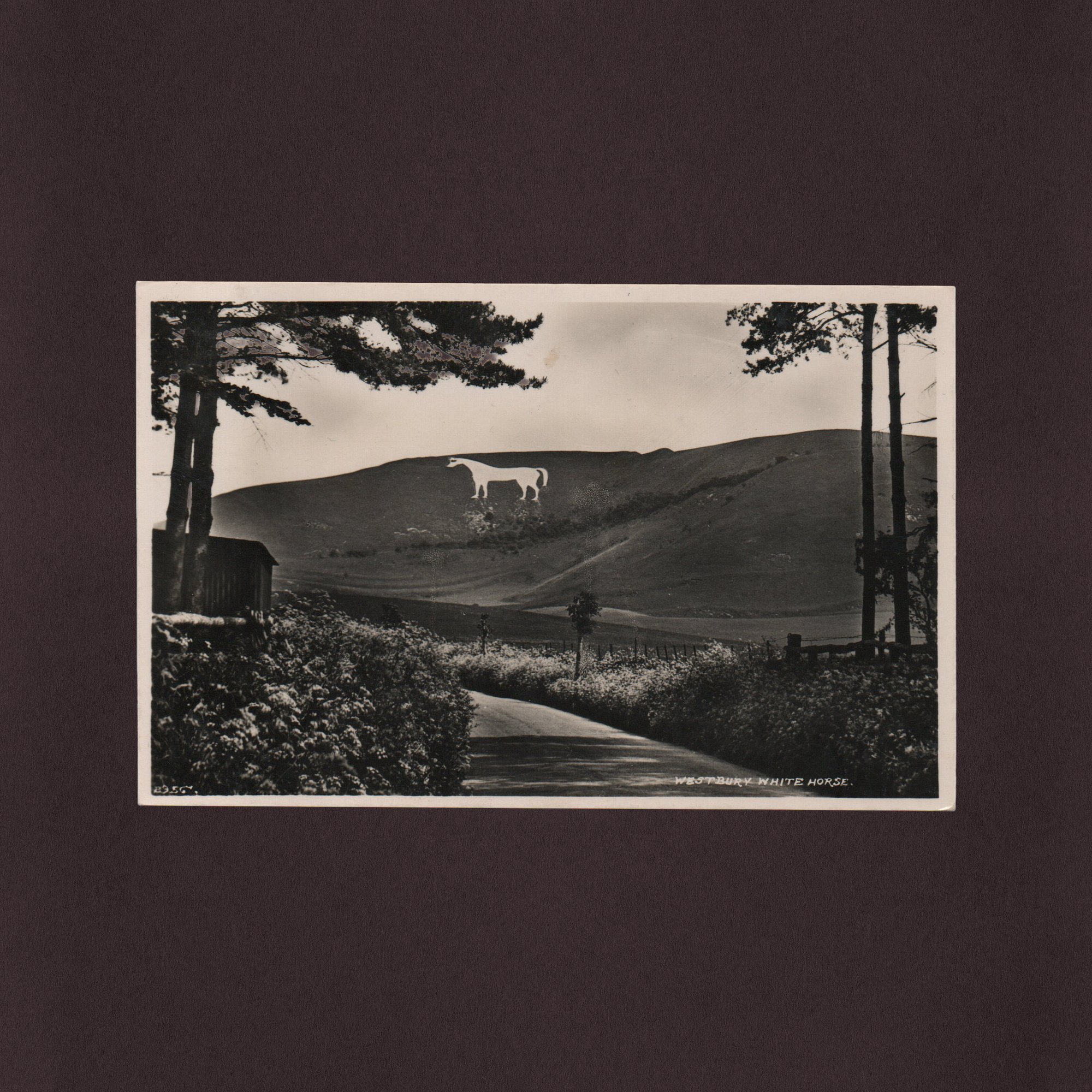Real photograph postcard of the Westbury White Horse, also know as the Bratton White Horse, in Wiltshire.